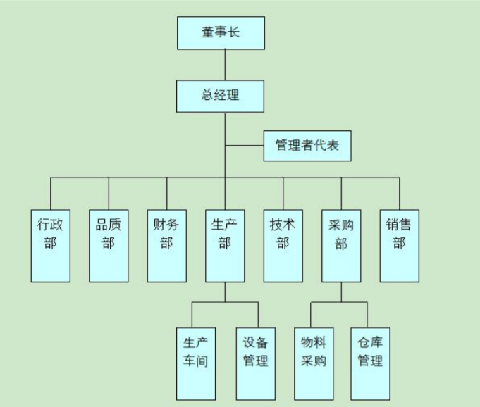 2.1 質(zhì)量管理機(jī)構(gòu) 公司總經(jīng)理親自主持以質(zhì)量為核心的經(jīng)營戰(zhàn)略的調(diào)查、研討和制訂。公司副 總及管理者代表對(duì)本公司的產(chǎn)品質(zhì)量安全工作全面負(fù)責(zé),組織制定企業(yè)質(zhì)量發(fā)展 戰(zhàn)略、年度質(zhì)量工作計(jì)劃和質(zhì)量安全保障措施;建立并實(shí)施先進(jìn)質(zhì)量管理體系和 管理方法;組織實(shí)施質(zhì)量改進(jìn)、質(zhì)量攻關(guān)等群眾性質(zhì)量活動(dòng);配備相應(yīng)人員并規(guī) 定其職責(zé)、權(quán)限和相互關(guān)系,確保質(zhì)量管理體系得到建立和保持,并推動(dòng)持續(xù)改 進(jìn)。 質(zhì)量管理組織機(jī)構(gòu)圖如下: